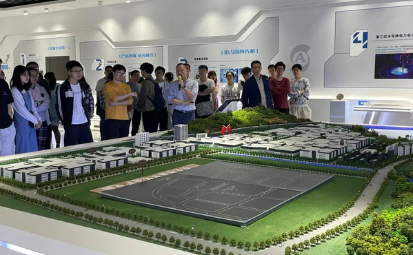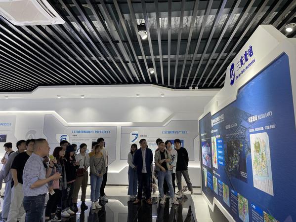 师生在工作人员引导下,先后参观了泉州三安半导体科技有限公司集成电路板块的员工宿舍、食堂和七星湾人才房项目,详细了解公司的住宿条件、住房补贴、用餐环境、职业培训、文体活动等员工福利情况。在项目展厅,工作人员播放宣传片介绍了公司在LED外延、芯片、微波集成电路、光通讯、射频滤波器、电力电子等全产业链布局发展情况。