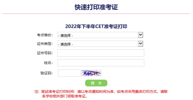 2.输入省份、证件类型、证件号码、姓名等信息即可打印准考证。