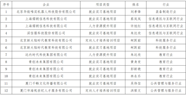 开云此次成功入选的12项供需对接就业育人项目涵盖了3大类别,5大行业,其中,定向人才培养培训项目2项,就业实习基地项目8项,人力资源提升项目2项。分别由教务处、学工部和各相关二级学院牵头负责,项目建设与学校专业设置和学生就业方向高度一致,是学校前期产教融合、就业育人工作的延伸和赋能。