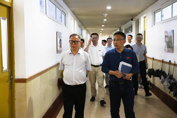 在文科教学楼群,屈校长对智慧教室建设提出了三点要求,他强调,要根据学校的实际做好做足智慧教室建设模式、功能特色等方面的调研,建好后切实服务于学校信息化建设和教育教学融合发展;要明确智慧教室建设的功能性和实用性,对智慧教室的整体建设情况和投入使用后的运行情况要有前瞻性;同时,要强化各项安全风险排查,细化施工安全措施并落实到位,注重施工细节,确保智慧教室建设安全、平稳、有序进行。
