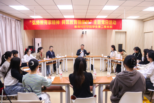 12月4日下午,校党委书记柯瑞清深入联系的教育科学学院学生第二党支部,以普通党员的身份,与党员们一起参加“弘扬教育家精神 共筑教育强国梦”主题党日活动。教育科学学院学生第二党支部党员、教师党员代表、部分入党积极分子参加。