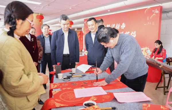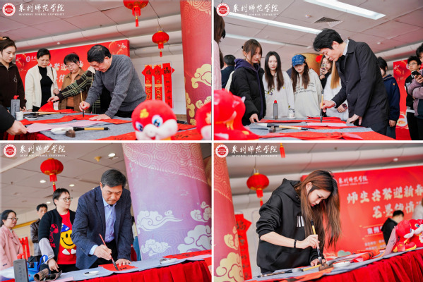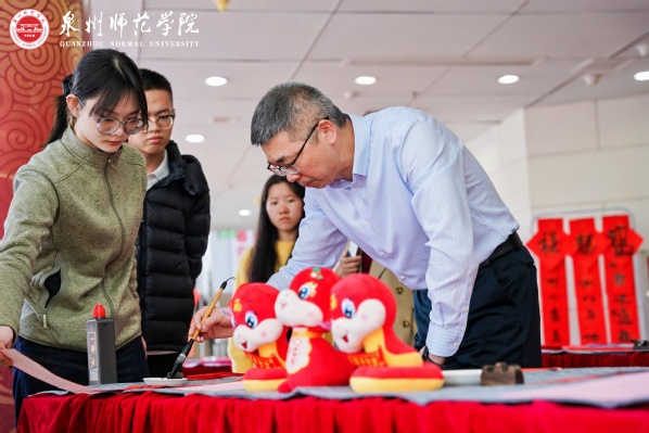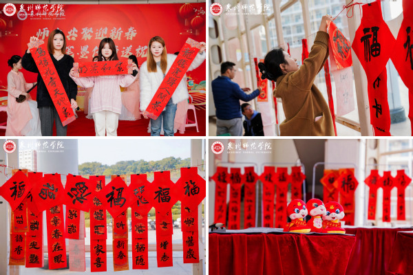 在2025年元旦春节即将来临之际,12月26日下午,校工会、党委宣传部、文学与传播学院在陈祖昌大礼堂联合开展2025 年迎新春写春联送祝福活动。此次活动主题为“师生共聚迎新春 笔墨传情送祝福”,旨在深入学习贯彻习近平文化思想,大力弘扬中华优秀传统文化,落实学校“文化校园”建设工作部署,丰富教职工文化生活,营造欢乐祥和的节日氛围,让广大教职工感受学校的关怀和祝福。校领导陈昌萍、林伟、黄江昆、夏侯建兵、陈明森莅临现场关心指导。