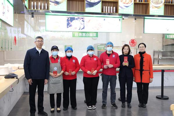 校领导先后来到荣茂广场、教工餐厅、医务室、文科楼B栋、青年公寓、南益行政楼等部分值守岗位,看望慰问坚守岗位的教职员工,了解春节期间各工作岗位的运行和保障情况。每到一处,校领导都代表学校感谢他们放弃与家人团聚的机会,为全校师生度过一个安全、和谐的春节提供有力保障,并为他们送上慰问礼金。叮嘱相关职能部门要强化责任担当,做好服务保障,为全校师生营造更加和谐稳定的校园环境。