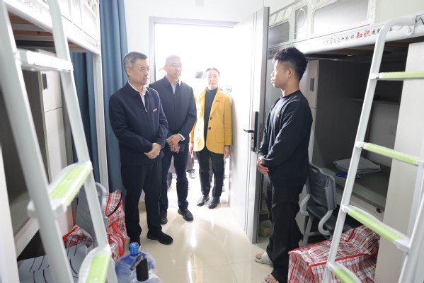 在图书馆,检查组一行查看了红色悦读空间。陈昌萍提出要在确保安全的情况下,通过科学规划布局和AI技术赋能,最大化发挥悦读空间文化育人功能,打造集红色教育、阅读体验、文化品牌于一体的学习阵地,提升学生参与感使用度。在创业实训大楼检查交通与航海学院、纺织与服装学院相关专业实验室。陈昌萍指出,车辆工程专业要紧盯新能源汽车技术迭代趋势,深化与汽车头部企业合作,将企业需求融入人才培养方案,共建研发基地,推动“专业链”与“产业链”精准对接;航海类专业可探索与海军基地合作,开设本科层次士官培养项目,打造“一院一品”特色品牌;纺织与服装学院要加快与东华大学、安踏公司等合作步伐,推进产业学院建设,服务地方经济产业升级。在D区学生生活楼,陈昌萍细致检查宿舍安全设施,并与返校学生亲切交流,了解生活诉求,要求相关部门及时回应学生关切,服务学生需求。在浅水湾创业园区检查了消防设施设备、疏散通道等,陈昌萍与创业学生深入交谈,询问项目进展及困难,要求相关部门和园区加强指导帮扶,助力学生创新创业。在第三食堂重点检查后厨卫生、食材储存及燃气安全等,强调食品卫生安全是重中之重,要严把采购渠道、提升菜品质量,以可口优质饭菜吸引师生,同时要定期开展燃气安全检查和培训,确保消防万无一失。在文科楼,检查了教室环境卫生及教学设备运行情况,指出要做好开学前的各项教育教学准备,加快推进多媒体系统智慧化升级,提供更加高效、便捷的授课环境。