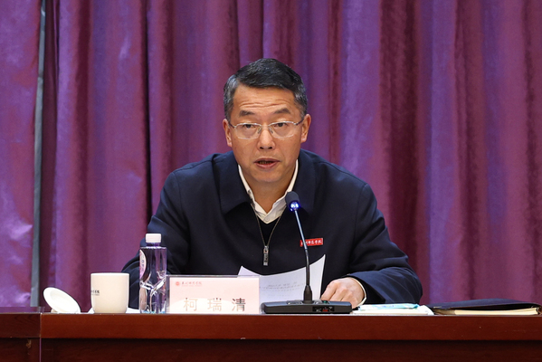 校党委书记柯瑞清指出,本科教育是立校之本、强校之基,新一轮审核评估,事关办好人民满意的教育要求,事关学校的人才培养质量,事关学校的办学水平,事关学校的未来,全校上下要深刻认识审核评估的意义,以高度责任感做好迎评工作;要严格对标对表,切实优化评估材料;要注重全员发动,切实营造良好氛围;要强化组织领导,切实发挥领导干部“头雁效应”;要严明纪律规矩,切实保障审核评估顺利开展。他强调,本科教育教学审核评估对学校来说既是机遇,更是挑战,迎评工作时间紧、任务重、压力大,希望全校各单位、师生员工以高度的责任感和使命感,积极投身到迎评各项工作当中,团结一心、凝聚智慧、全力以赴、担当作为,为圆满完成审核评估、推动学校内涵式高质量发展作出新的更大贡献!