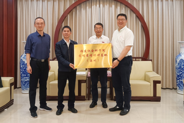 会谈结束后举行了“福建社会科学院国情省情调研基地(泉州)”授牌仪式。随后召开国情省情政策与发展趋势调研座谈会,双方就如何建设国情省情调研基地(泉州)进行了深入探讨。