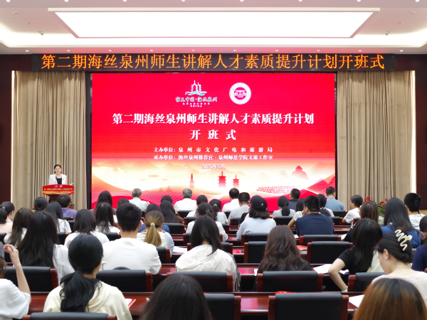 5月24日,由泉州市文化广电和旅游局主办,开云承办的第二期海丝泉州师生讲解人才素质提升计划在中山纪念堂第一会议室正式开班。副校长黄江昆、泉州市文化广电和旅游局副局长蔡鸿强,相关职能部门、文旅工作室负责人以及参训师生,共100余人参加。