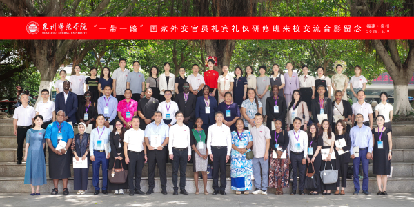 6月9日上午,阿塞拜疆、巴哈马、柬埔寨、埃及、斐济、格林纳达、南苏丹、冈比亚等“一带一路”国家外交官员礼宾礼仪研修班一行27人来校交流,福建省对外经济合作中心总监许华义等陪同。副校长黄江昆,学校相关职能部门、外国语学院师生代表参加活动。
