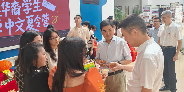 期间,肖华鑫一行参观了学校菲律宾文化展和菲华夏令营营员作品展,与营员们亲切交流;走访了丝路语言文化研究中心和古陶文博馆。(国际交流与合作处)