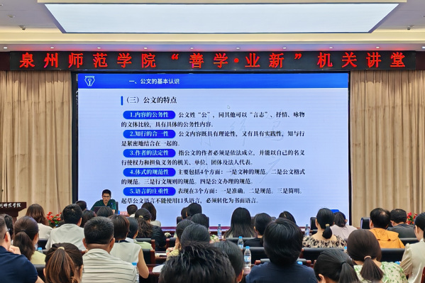 首期讲堂邀请福建师范大学纪检监察学院廉政学教研室主任周建国作题为“公文写作理论与实务”的专题辅导。讲座中,周建国结合自身工作经验,从公文种类、格式规范、写作技巧、常见问题等方面展开系统讲解,通过典型案例分析和实操指导,帮助参训人员掌握公文处理的核心要领。讲座内容翔实、深入浅出,为与会人员深化对公文写作理论与实务的理解与运用提供了有效指引。