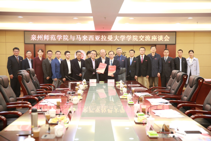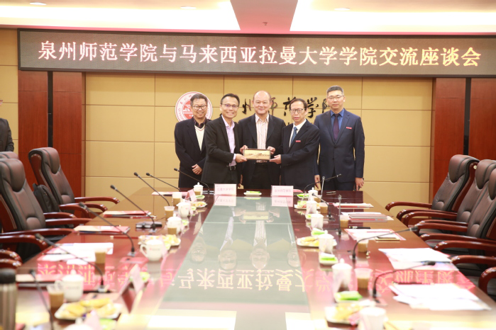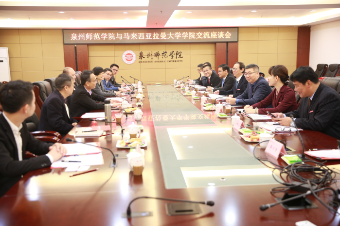 On January 11, Quanzhou Normal University received a visit from the delegation of Universiti Tunku Abdul Rahman (UTAR) of Malaysia, whose members included Datuk Seri Yao Changlu, board director of UTAR, Mr. Li Shiwei, president of UTAR, Xie Sujuan, deputy president of UTAR, and Datuk Liu Guotai. QNU president Qu Guangqing and vice president Huang jiangkun met with the guests. Besides, among those present were the officials in charge of relevant departments, such as Party and Administration Office, Foreign AffairsOffice ,Academic Affairs Office , School of Innovation and Entrepreneurship, School of Literature and Communication, TSLBusiness School and School of Music and Dance. A symposium, presided by Huang Jiangkun, was held between two universities.