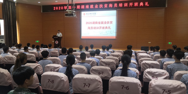Some teacher representatives of the training center, representatives of relevant departments in Hunan Province, and 100-plus trainees of the poverty-alleviation training class attended the opening ceremony. The students would receive training for more than three months in QNU, including military training, vocational ideas, crew quality development, basic safety education, ship security awareness and responsibility, competency training for seafarers on duty, etc.