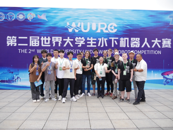 The team, comprised of captain Huang Shaoyong and members Wang Guojun, Yu Honghui, and Zhao Yuanhao from School of Transportation and Navigation, along with Chen Yuhan from FCCC, made their competition debut with an impressive display of innovation and technical prowess.