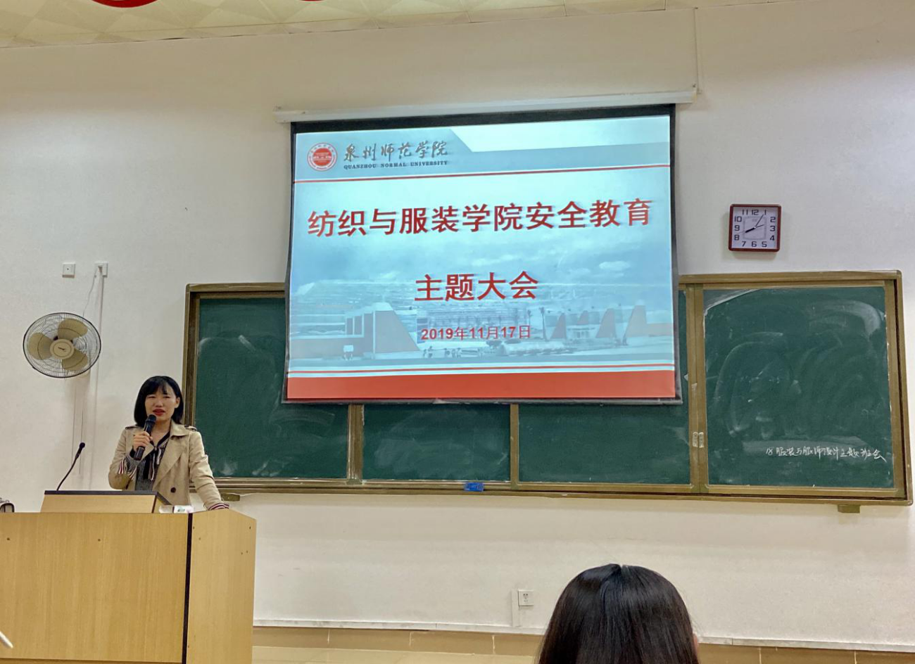 会上,聂莹老师传达学院安全工作会议精神,以近期频发的校园安全事故为例,强调安全稳定的重要性,要求同学们要增强安全意识,提高自我保护能力。程钟洛老师和谢坤宏老师围绕宿舍安全、交通安全、用电安全、食品卫生安全等方面展开叙述,强调同学们要做好安全防范工作,注意宿舍消防安全,骑车乘车安全以及食品卫生安全等。