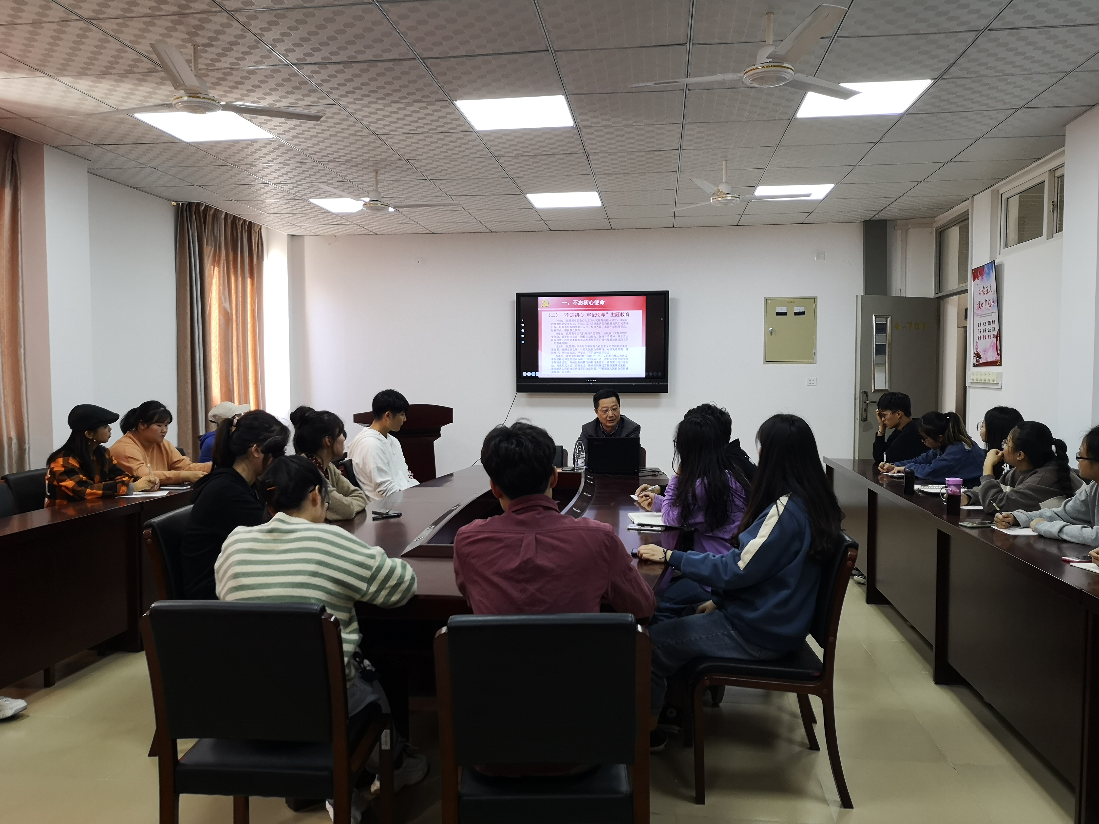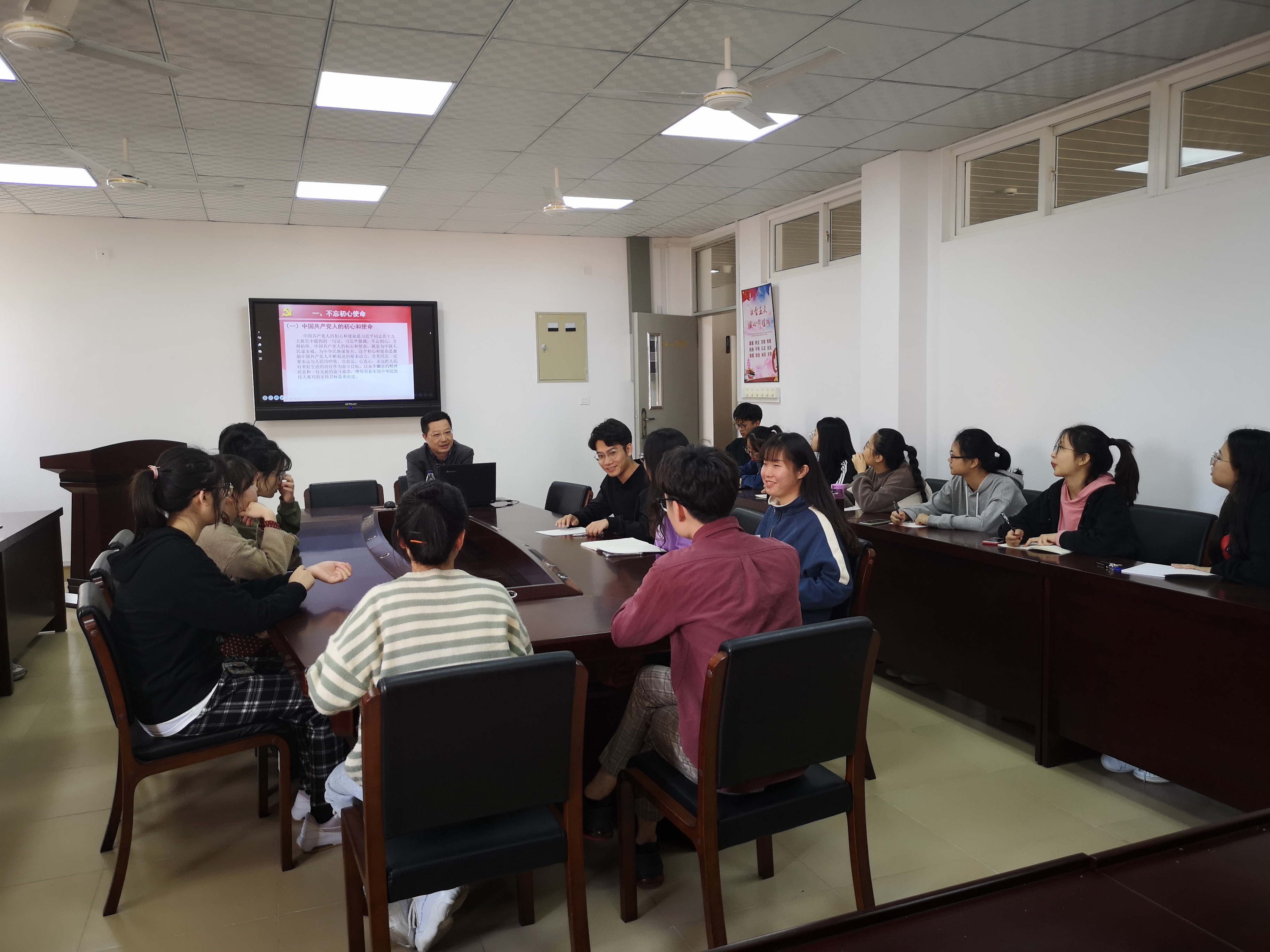 1121日下午,党委书记张玉武在王爱约实验楼701会议室“不忘初心、牢记使命”主题教专题党课,师生党员和入党积极分子参加学习。