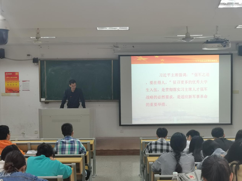 会上,军转干部首先解读了今年大学生应征入伍的相关条件和政策法规;其次,军转干部详细介绍了高校大学生应征入伍可享受“四个优先”国家学费资助、退役后就业就学优惠等优抚政策;最后,军转干部结合相关的视频短片,生动形象地介绍了现在的部队生活,鼓励同学积极报名参军,在军队中淬炼青春,实现人生价值。