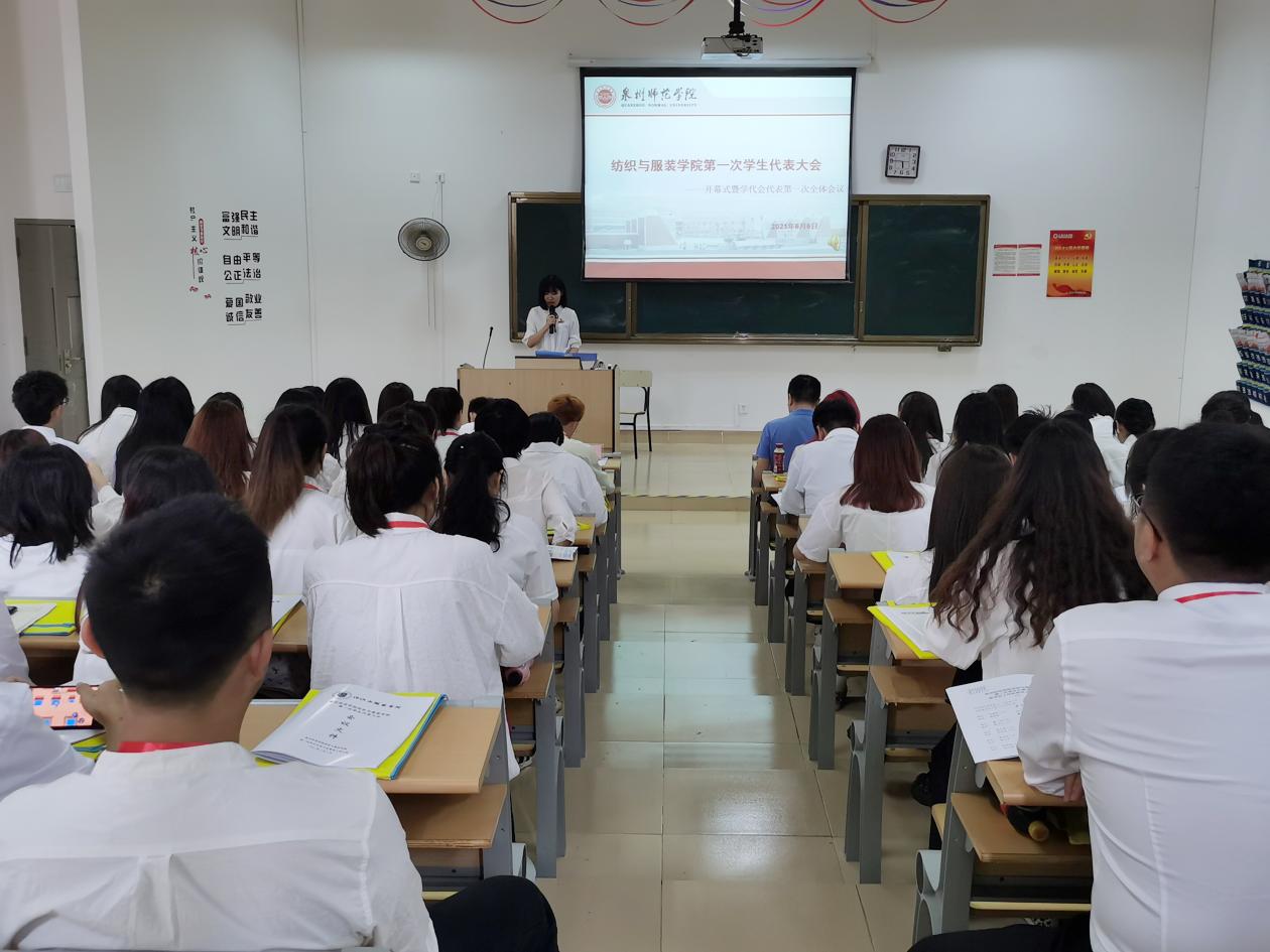 6月6日上午,开云kaiyun官网纺织与服装学院第一次学生代表大会在荣助212召开,院党委书记张玉武、学工办主任聂莹、辅导员程钟洛和陈灿辉、校学生会主席团代表刘棣劼、院学生会主席团成员以及60名学生代表参加此次会议。