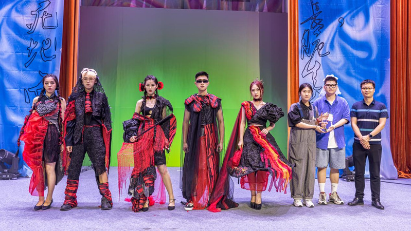展演过后,由刘鹏智、孟宣羽两位设计师所呈现的作品《夑》,服装造型独特夸张,烈焰的红与深奥的黑碰撞交汇,特色鲜明,熠熠生辉,最终获得本次大赛的金奖。此外,本次大赛还评选出银奖两名、铜奖三名、优秀奖八名;最佳工艺奖、最佳效果奖、最佳新人奖、最具潜力奖、最具创意奖、最具商业价值奖各一名。