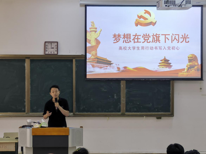 课上,程钟洛围绕“梦想在党旗下闪光”的主题,从中国共产党的发展历史、端正大学生入党动机、从榜样身上汲取力量及以实际行动争取入党等四个方面的内容,为全体学员上了一堂生动的理论学习课,带领同学们深入学习建党故事,解码伟人精神,引导同学们要学习、掌握党的光辉历程,向革命先辈学习,树立崇高理想,肩负时代责任。程钟洛通过图文并茂的方式,多维度地阐述了端正入党动机的重要性,引导同学们要明确努力的方向,自觉把个人的思想和行动,统一到国家民族的伟大事业上来,勇立时代潮头,争做时代先锋,让梦想在党旗下闪光。(文/图:纺织与服装学院团委宣传部)