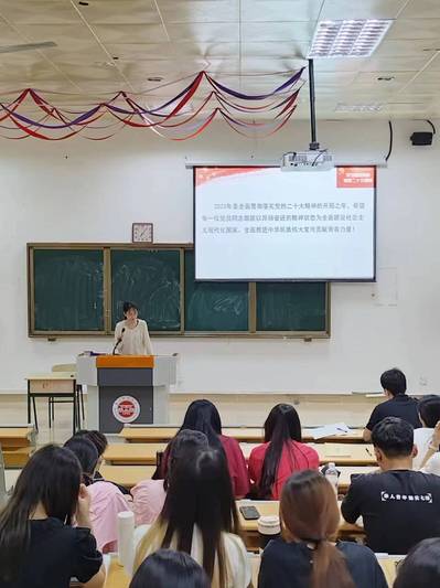 李晓希围绕“五个牢牢把握”,对党的二十大报告的主要内容进行了生动阐释,引导同学们要认真学习党的二十大精神,切实将思想和行动统一到党的二十大精神上来,做到不负新时代,奋进新征程。