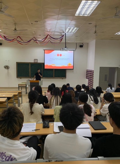 为深入学习贯彻党的二十大精神,把广大青年学生的思想统一到党的二十大精神上来,引导广大青年坚定不移听党话、感党恩、跟党走,9月9日晚上,纺织与服装学院在荣助梯教212教室开展团干部上讲台“第一课”活动,辅导员程钟洛、陈灿辉、廖春霖、李晓希及全体学生党员参加。