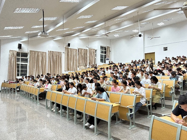 9月16日晚,纺织与服装学院中山纪念堂五楼梯教举行2023级新生入学教育暨“开学第一课”。辅导员陈灿辉、李晓希及2023级全体新生参加。