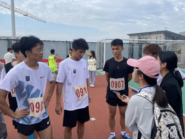 校运会期间,不仅有运动员们的英勇身姿,还有一群默默付出的“无名英雄”:在大本营,志愿者们有条不紊地检查场地设施和器材,准备好饮用水和急救药品,确保一切准备就绪;在检录场地,体育部工作人员引导着运动员到达指定位置,仔细核对运动员的身份和号码牌;在赛场上,宣传部的同学们高举相机,捕捉比赛过程中的精彩瞬间;在操场的各个角落均可见前来观赛的同学们,他们在比赛前踊跃投稿,为运动员送上祝福,比赛中竭尽全力为运动员呐喊助威,比赛后及时递上所需物品……同学们齐心协力,与运动员同频共振,用辛勤的汗水为运动员们保驾护航。