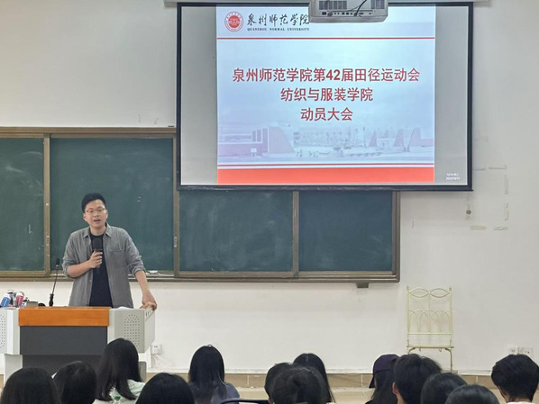 为推进第42届校运会相关工作顺利展开,充分调动运动员积极性,激发训练斗志,10月15日中午,纺织与服装学院在荣助梯教212召开第42届校运会动员大会。辅导员陈灿辉主持,全体运动员及体育部成员参加。
