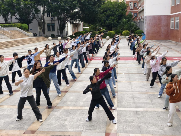 由90余名2024级新生组成的广播操队伍,每日都准时在中山广场迅速且有序地集结,他们青春洋溢,满怀激情,充分利用宝贵的课余时间,积极投入到广播操训练之中。“第十套广播体操现在开始”,随着音乐声响起,同学们精神抖擞、昂首挺胸,跟随音乐节拍踏步、伸臂、扩胸、转体、踢腿、弯腰,以整齐划一的动作、热情饱满的姿态,充分展现纺服学子健康向上、团结协作、锐意进取的良好精神风貌。从入场到列队,每一个转身、每一次踏步,都呈现出严格的纪律性和高度的集体主义精神,同学们的眼神中闪烁着坚定与自信,用行动诠释着“团结就是力量”的真谛。