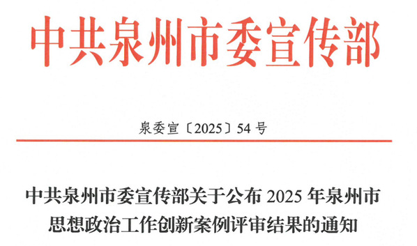 近日,泉州市委宣传部公布2025年泉州市思想政治工作创新案例评审结果,纺织与服装学院报送的案例《构建“一体·两翼·三阶·四驱”思政工作体系 助推泉州传统服饰人才创新发展》获评学校类一等奖。