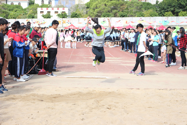 开赛前,各位参赛老师在场外做压腿、伸展等准备活动,随后进行了激烈的比赛。我院的教工运动员们自信的站在沙坑前的跑道上,眼神笃定,英姿飒爽,助跑、起跳、落地,一气呵成。经过比赛前用心的准备,她们的动作已经十分标准,赢得了场下观众的阵阵喝彩。