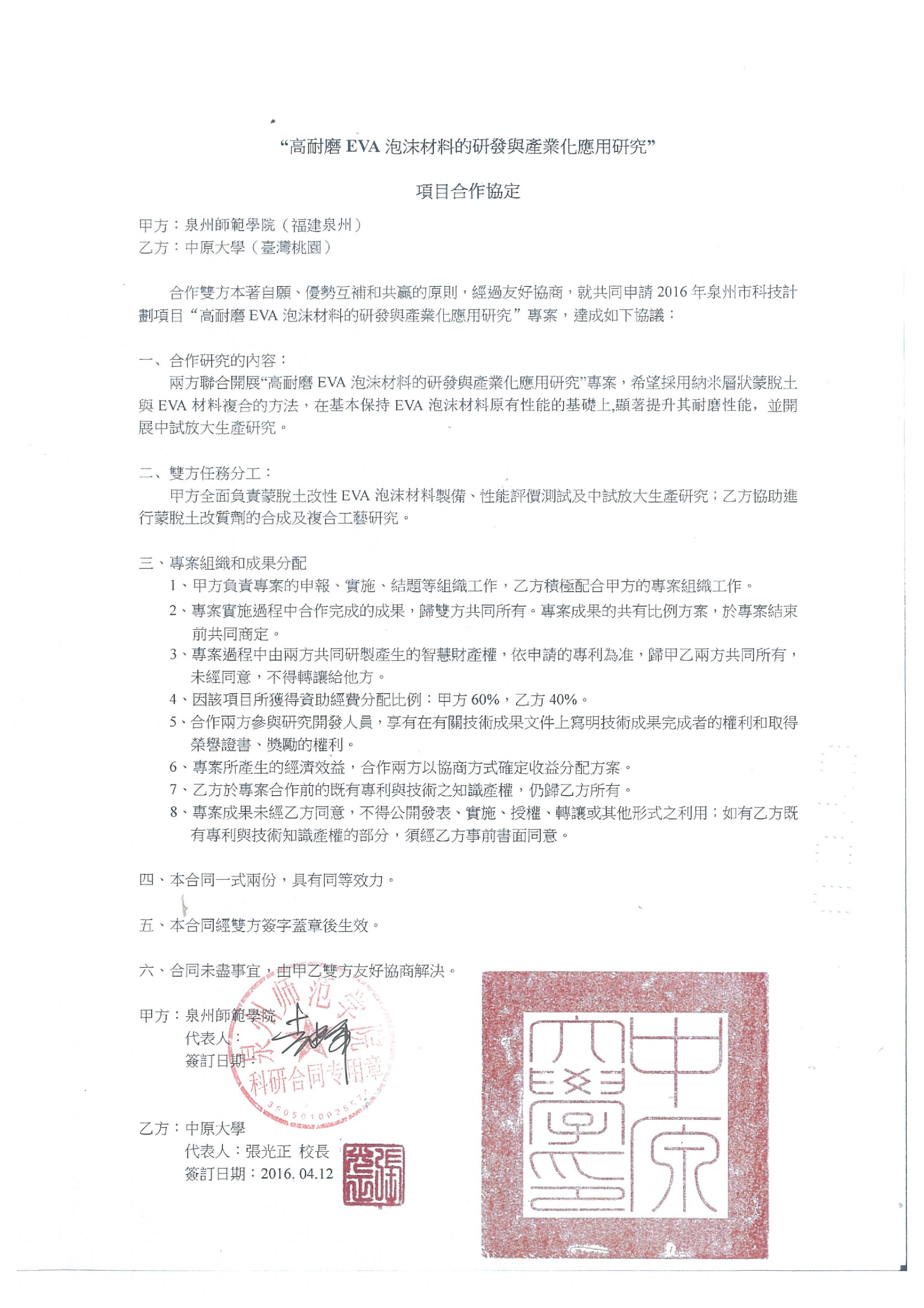 本专业自创办以来,与台湾各高校的合作越来越紧密:1. 于2016年11月派遣吕凤娇和王玲玲两位老师到台湾元智大学参加《福建省高校理工领域师资闽台联合培训班》,并如期获得相应研习证书;2. 2017年春季邀请台湾元智大学谢建德教授采用中英文相结合授课方式为15材料化学(闽台合作)专业学生讲授《材料科学导论》课程,弥补了本校老师仅有中文教学的不足,同时拓展了学生的专业知识面;3. 台湾高校多名专家莅临本学院参观基础化学实验室建设并对16材料化学(闽台合作)专业学生的实验操作进行现场指导点评。同时与台湾各高校互相学习,弥补不足,为学生更好适应后面的专业实验学习和毕业论文设计,打下坚实基础;4. 在科技項目合作上,卓东贤教授与台湾中原大學联合申请研发项目(高耐磨EVA泡沫材料的研發與產業化應用研究)并获得资助。