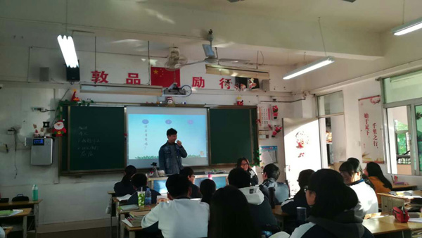 会上,冯老师做了开场白,针对此次月考,与各位同学交流了同学们学习上比较关切的问题。接着,班主任潘老师介绍了曾老师在大学的表现和获奖情况,强调机会难得,正好是有这个实习的机会能够跟大家分享,建议同学们认真参与、交流学习学习经验。随后,曾老师围绕三个学生们最关心的问题——“读书有用吗?”“怎么读书?”“读好书能干嘛?”展开讨论,并把自己对着三个问题的看法与同学们交流,之后介绍了自己求学旅途中一些经过身体力行的学习方法。由于时间问题,班会在意犹未尽中结束。