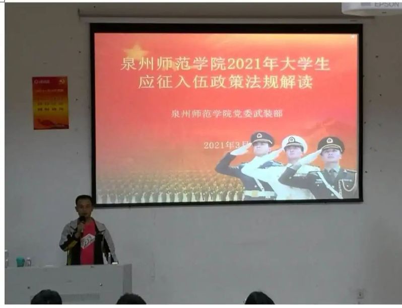 4月15日,我院邀请林强、陈斌峰、黄琼良、瞿晨等4名泉州市军转干部给20级各班开展国防教育暨大学生征兵入伍政策解读宣传会。