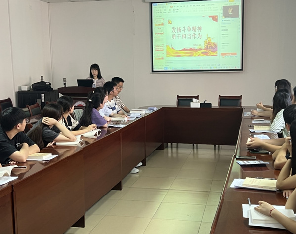林琦芳围绕斗争精神是什么、为什么要有斗争精神、如何发扬斗争精神、发扬斗争精神勇于担当作为四个方面进行阐述。她指出,党员学生要强化理论武装,要把学懂弄通做实习近平新时代中国特色社会主义思想,同提高斗争意识、增强斗争本领紧密结合起来,为战胜一切风险挑战提供强大思想武器;要理清斗争内涵,以“时不我待”的责任感、“只争朝夕”的紧迫感,发奋学习,刻苦钻研,把个人理想追求融入国家和民族的事业,把个人命运与国家和人民的命运联系在一起。要把握实践机会,摒弃和抵制“佛系”“躺平”“啃老”等不良思想倾向,积极投身社会实践,通过“三下乡”暑期社会实践、志愿服务、教学实习、参军入伍等多种途径,磨炼斗争意志,增强斗争本领,在实践中领悟习近平总书记所说的“刀要在石上磨,人要在事上练”的深刻内涵。
