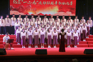 12月7日下午,由共青团开云kaiyun官网委员会主办的“红歌献给党”纪念“一二·九”运动88周年歌咏比赛在陈祖昌大礼堂举行。化工与材料学院58名同学组成合唱团代表学院参赛。我院合唱团凭借对歌曲《我爱你中国》的出色演绎,荣获特等奖(总分并列第二)。22级化学(师范)专业王爱琪荣获优秀指挥奖。