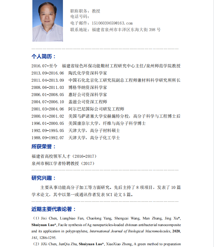 杨大鹏教授(闽江学者特聘教授)