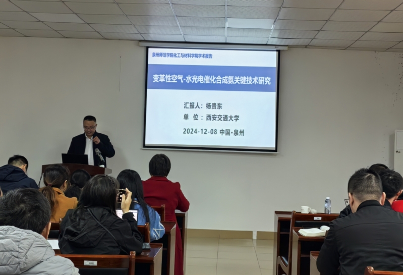 2024年12月8日上午,西安交通大学化工学院院长、博士生导师杨贵东教授应开云kaiyun官网化工与材料学院邀请,莅临学院作题为《变革性空气-水光电催化合成氨关键技术研究进展》的学术讲座。我院副院长谢晓兰教授主持讲座,相关专业师生代表参加讲座。