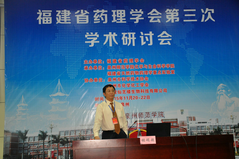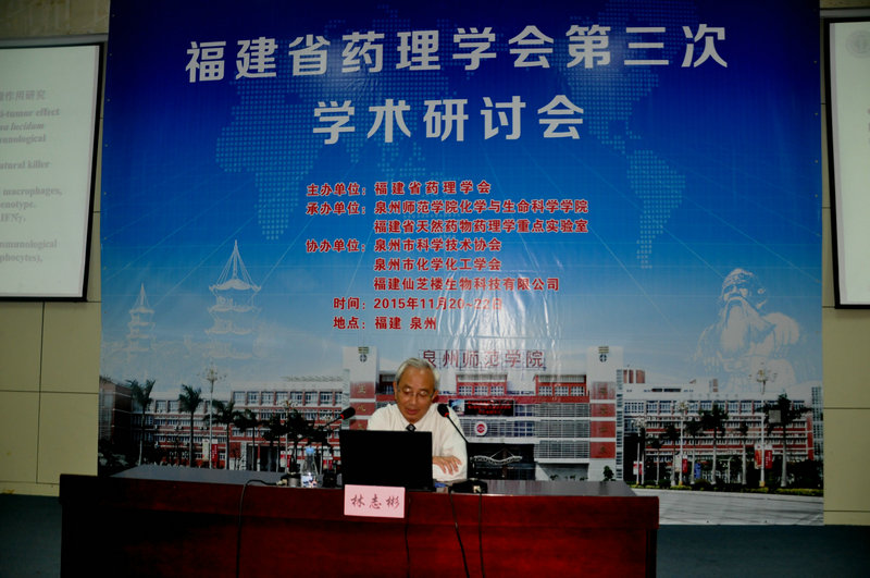林华东副校长,福建省药理学会理事长许建华教授、泉州市化学化工学会理事长、黎明大学校长林松柏教授、泉州市食品药品监督管理局药品监管科陈朝旭科长出席了开幕式。法国国家药学科学院外籍院士、北京中医药大学中药学院院长林瑞超教授,中国药理学会名誉理事长、北京大学医学部林志彬教授,“长江学者计划”特聘教授、中国医学科学院医药生物技术研究所所长邵荣光教授,中国药理学会前任名誉理事长、中国医学科学院药物研究所张均田教授,台湾嘉南药理大学药理学院院长李冠汉教授、吕玉玲教授6位特邀专家,全省相关院校、医院、研究机构、制药企业的120多位与会代表,校科研处负责人,化生学院领导、老师及部分学生参加了研讨会。开幕式由福建省药理学会史道华副理事长主持。