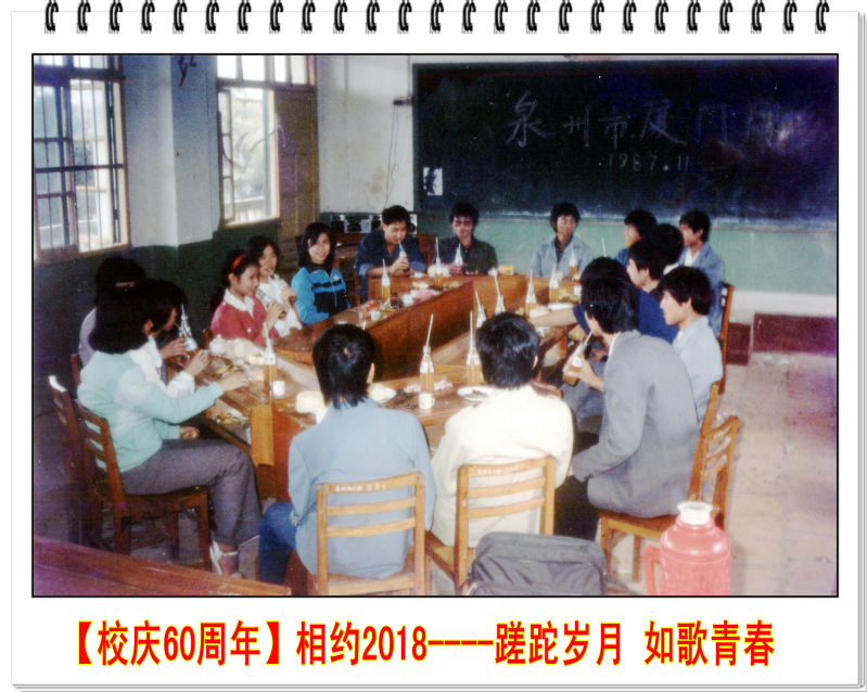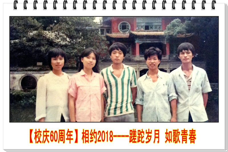 当年懵懂的我们,满怀憧憬、朝气蓬勃,在戴聪杰、谢进金、黄戚民、吴文杰、黄周英、刘怀如、蔡英卿、洪霞等几位良师指导下,得以知识的滋养、品德的润泽。“善学如泉”是他们的谆谆教诲;“正心至大”是他们的殷切期望。我们亦师亦友,青春在导师们博大的胸怀中恣意生长。同入泉州“农校”,探索求知;携手崇武海边,拾贝采风;踏足福州鼓山,与蝶共舞。在厦大校园里实践提高,在泉州三中、南安国光中学一个个实习的讲台上留下了我们初为人师的稚嫩……简单的倔强,率性的固执,纯真染成了青春的色彩,争吵、偏激、冲撞……谱写了唱调激昂顿挫的青春舞曲!