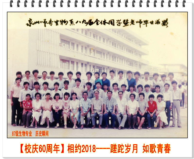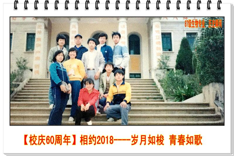 1987年9月,踏着秋风,闻着稻香,来自厦门、泉州的40位莘莘学子相遇在母校泉州师专,组成了87级生物专业班。40个青春,40个人生最黄金的阶段,在泉州师专的沃土上邂逅、碰撞、影响、生长,融成了一段时光里和谐、趣味、勃发的青春生态圈,自然天成,恣意绽放。