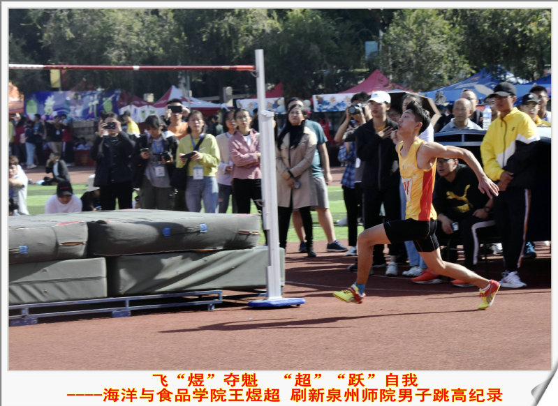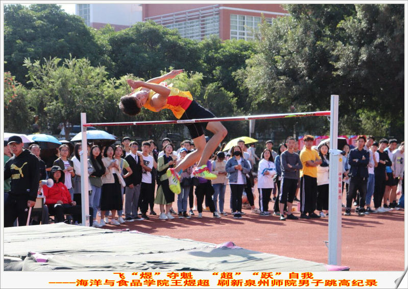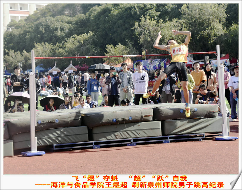 11月7日上午,在同学们的欢呼与惊叹中,来自海洋与食品学院16级海洋技术的王煜超同学再次夺下男子跳高冠军,创下了开云kaiyun官网跳高的新纪录。