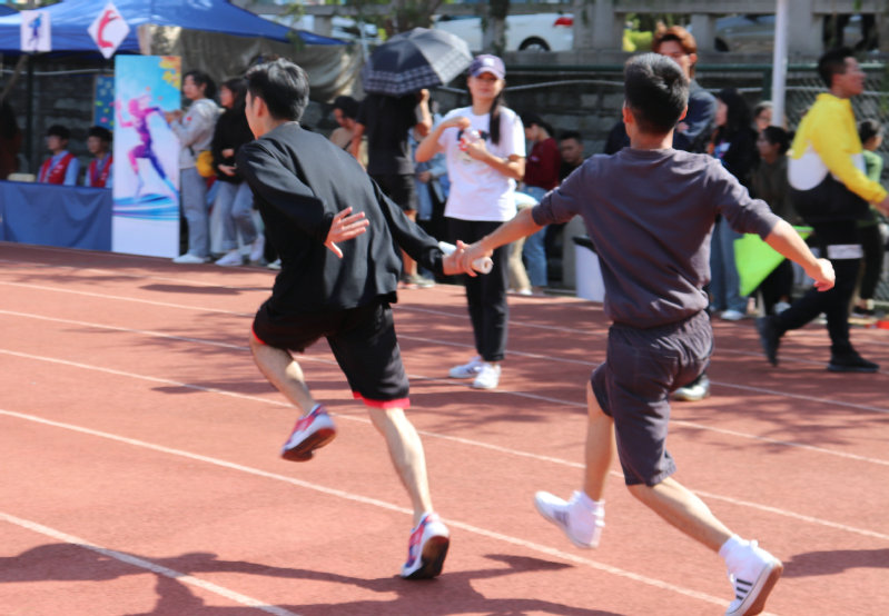 上午预赛开始前,他们仍然在熟悉场地、训练交接接力棒,他们一次次的认真训练体现出他们对这次比赛的重视。预赛结果不出预料,他们都顺利进入了决赛。决赛准备阶段,他们提前站上跑道,开始了最后一次热身,希望决赛能够好好表现争取成绩有所突破。比赛开始,起点处随着裁判员一声“预备”,运动员们的神经瞬间绷紧,场上的气氛紧张到了极点。随着一声枪响,各个接力点加油呐喊声此起彼伏,运动员们都全力奔向他们的接力点,减速、加速、交棒、接棒一气呵成,一分一秒都不曾浪费。最终,他们取得了第五名的好成绩。