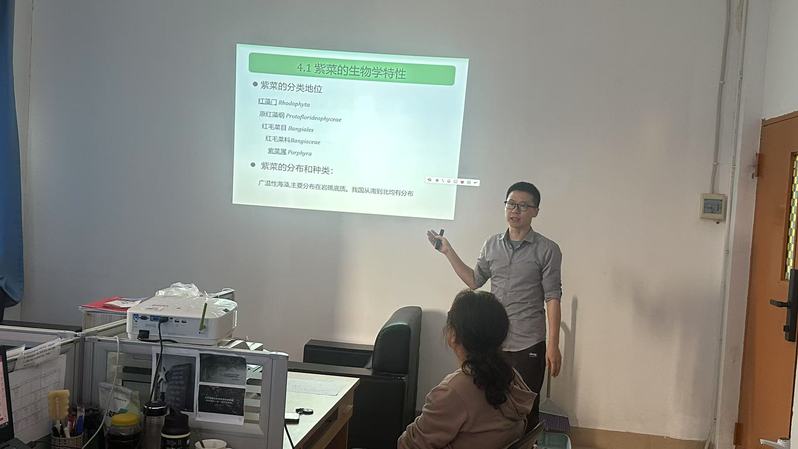 王芳教授通过《营养与食品卫生学》教学片段展示,系统解析了案例教学与课程思政的融合路径,参会教师就思政元素与专业知识的自然融合展开讨论。崔玉栋副教授通过《海洋经济动植物增养殖学》课程的磨课与示范课展示,呈现了“以学生为中心”的混合式教学模式。教师们针对混合式教学中的线上资源利用率和课堂互动有效性展开交流,提出引入即时反馈工具和小组协作任务以提升学生参与度。