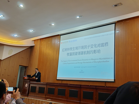 邱勇副教授聚焦于海洋生态的微观领域,他的报告《红树林微生境环境因子变化对底栖微藻固碳储碳机制的影响研究》,深入分析了红树林微生境中环境因子与底栖微藻固碳储碳之间的关系,为海洋生态系统的碳循环研究提供了新的视角和数据支持。