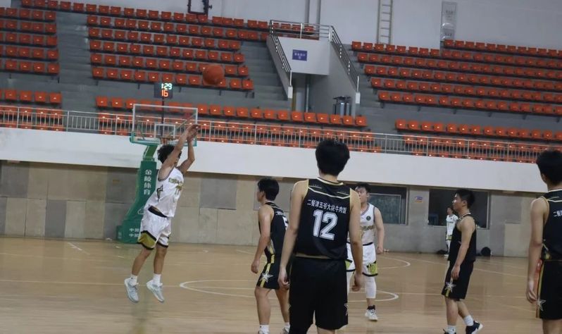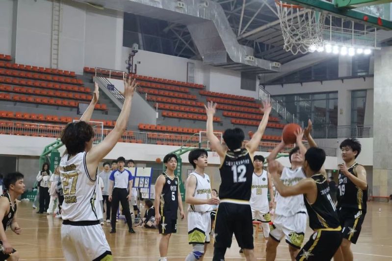 裁判的一声令下篮球从空中跃起势如破竹的锋芒展露于我院男子眼中似能穿透一切阻碍队员们鞋面与地面摩擦声与欢呼声交织成一张密不透风的激昂之网最后在与教科学院的争夺赛中我院男篮以30:27拿下了第七名。
