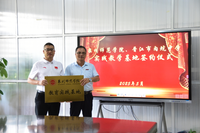 学院副院长梁鹏与内坑中学党总支书记陈鸿群共同签署了共建教育实践基地协议书,党委书记蔡志荣向陈鸿群书记授教育实践基地牌匾。