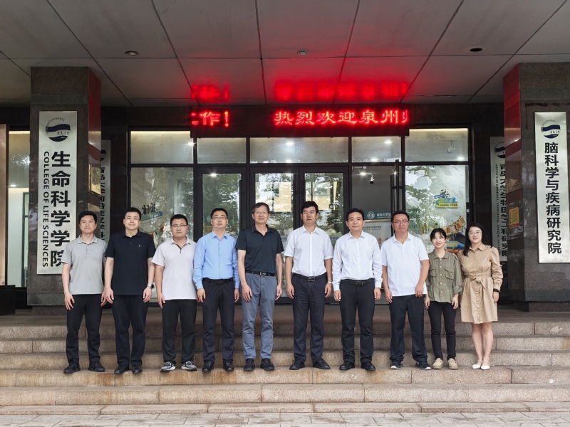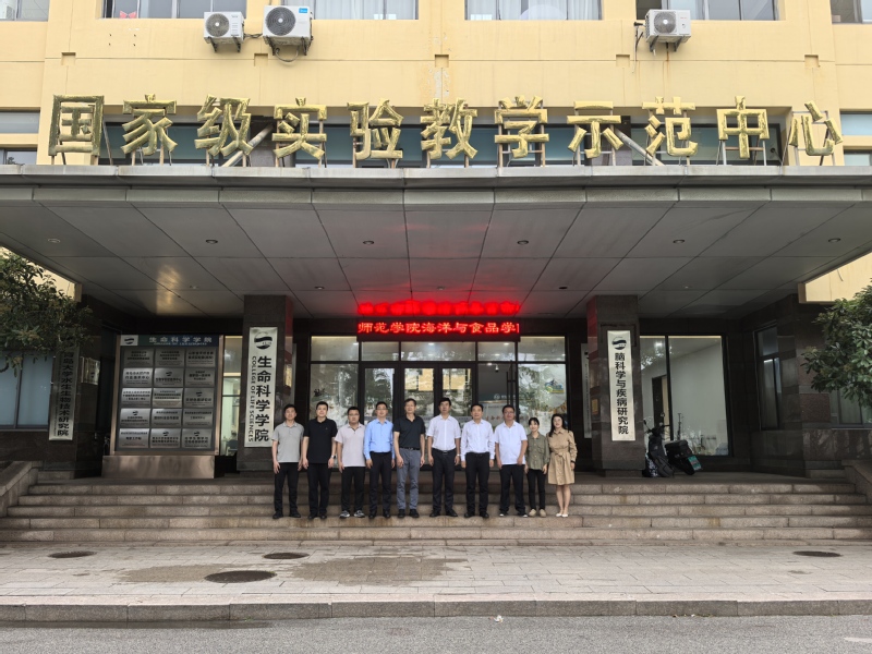 在青岛大学,生命科学学院党委书记孙建华、院长孙海新对学院一行人的到访表示热烈欢迎。团队深入学习了该校在科研团队建设、本科生培养模式、学科交叉融合方面的经验做法。青岛大学整合多学科资源,在海洋与食品领域打造了多学科协同创新平台,推动了专业建设的创新发展。特别是该校施行的科研型、教学型、科研教学型分类培养模式,可以充分发挥每个教师优势,提高教学质量和科研产出。此外,本科生“创新班” 模式,以参加省级及以上创新项目作为毕业要求,有效提升了学生的科研素养、实践能力与创新能力。最后,双方就如何打破学科壁垒、促进海洋科学与生物技术、生物与医药等多学科深度交叉融合进行了深入交流,并探讨了在教学资源共建共享方面的合作机会。