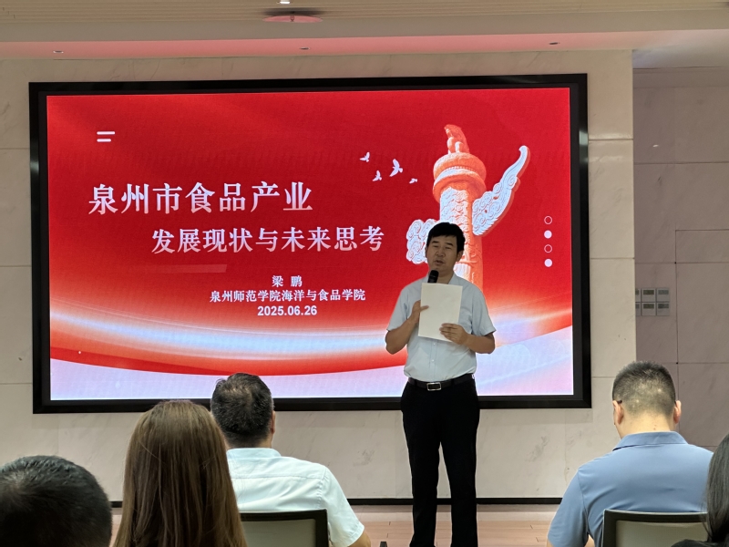 在交流环节,梁鹏副院长分享了主题为 “泉州市食品产业发展现状与未来思考” 的报告。他深入剖析了泉州市食品产业发展格局,肯定了产业在品牌塑造、技术创新及市场拓展等方面的成就,也指出了存在的短板。结合行业趋势与政策导向,他对产业未来发展路径提出前瞻性思考与可行建议,为企业发展提供了智力支持。
