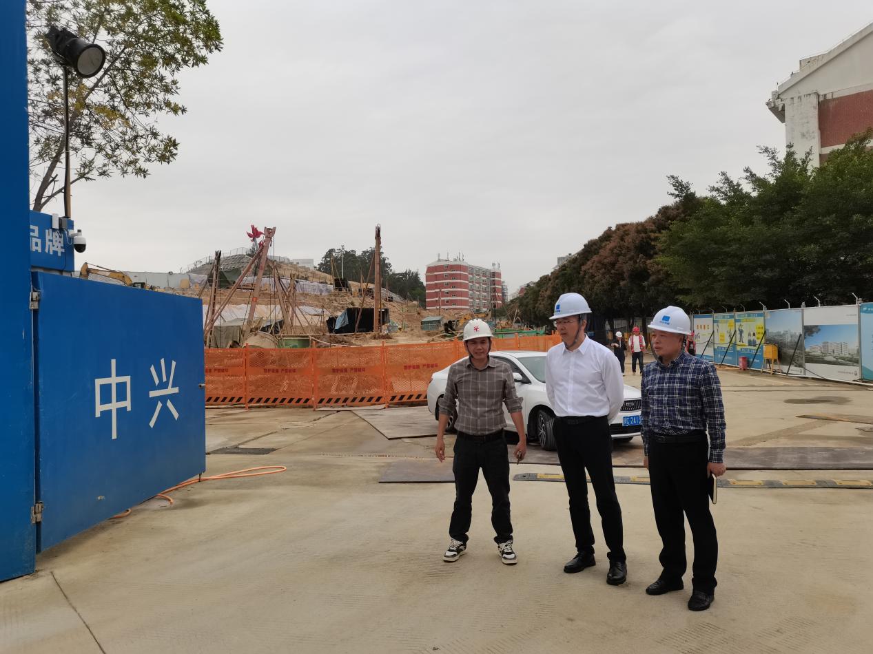 2023年4月13日上午,副校长黄江昆带队前往D区学生生活楼建设项目开展施工通道安全专项检查,基建处处长谢继存等人陪同检查。